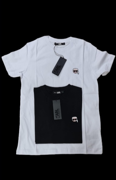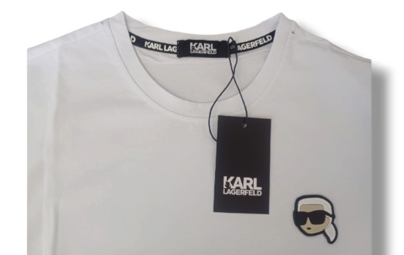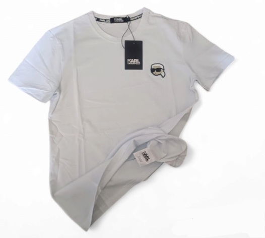 Karl Lagerfeld premium cotton T-shirt. Effortlessly eye catching. Made from breathable organic cotton, this crew-neck tee features the Ikonik Karl artwork patch at the chest. Premium quality with all the bells and whistles. Features all tags and labels, which include the Ikonic Karl Embossed Branding at the nape of the shirt.